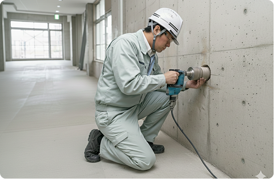 35年の実績と専門知識に基づき、建物の劣化や火害などを詳細に調査・診断。長期的な維持管理を見据えた、正確な現状把握と改善計画をご提案します。